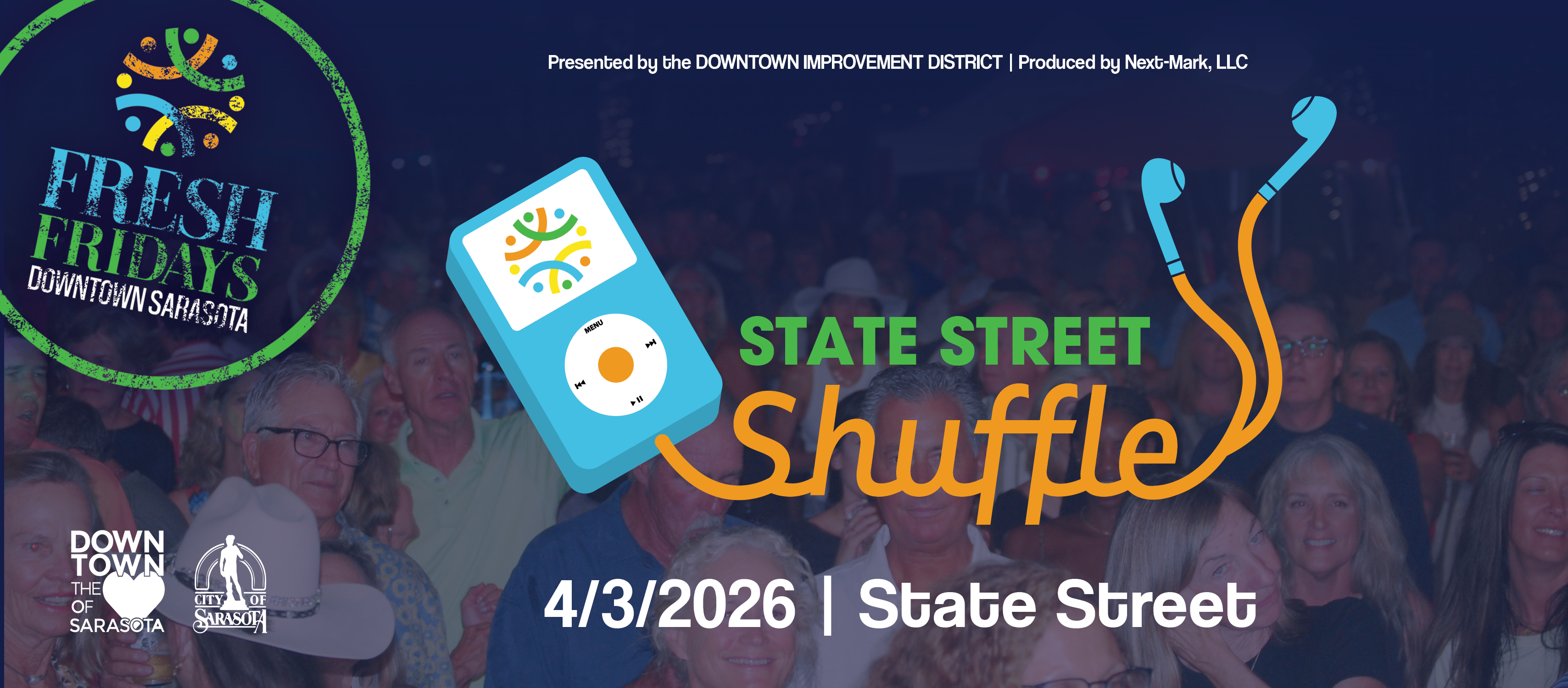 Get ready to dance your way through the decades at State Street Shuffle, the April edition of Fresh Fridays in downtown Sarasota. Spring evenings in Sarasota are made for nights downtown, and with the cooler days behind us and beach and pool season just around the corner, it’s the perfect time to celebrate together. Join us on April 3 from 7–10 PM for Fresh Fridays: State Street Shuffle, where State Street transforms into a lively outdoor dance floor filled with music, movement, and downtown energy.